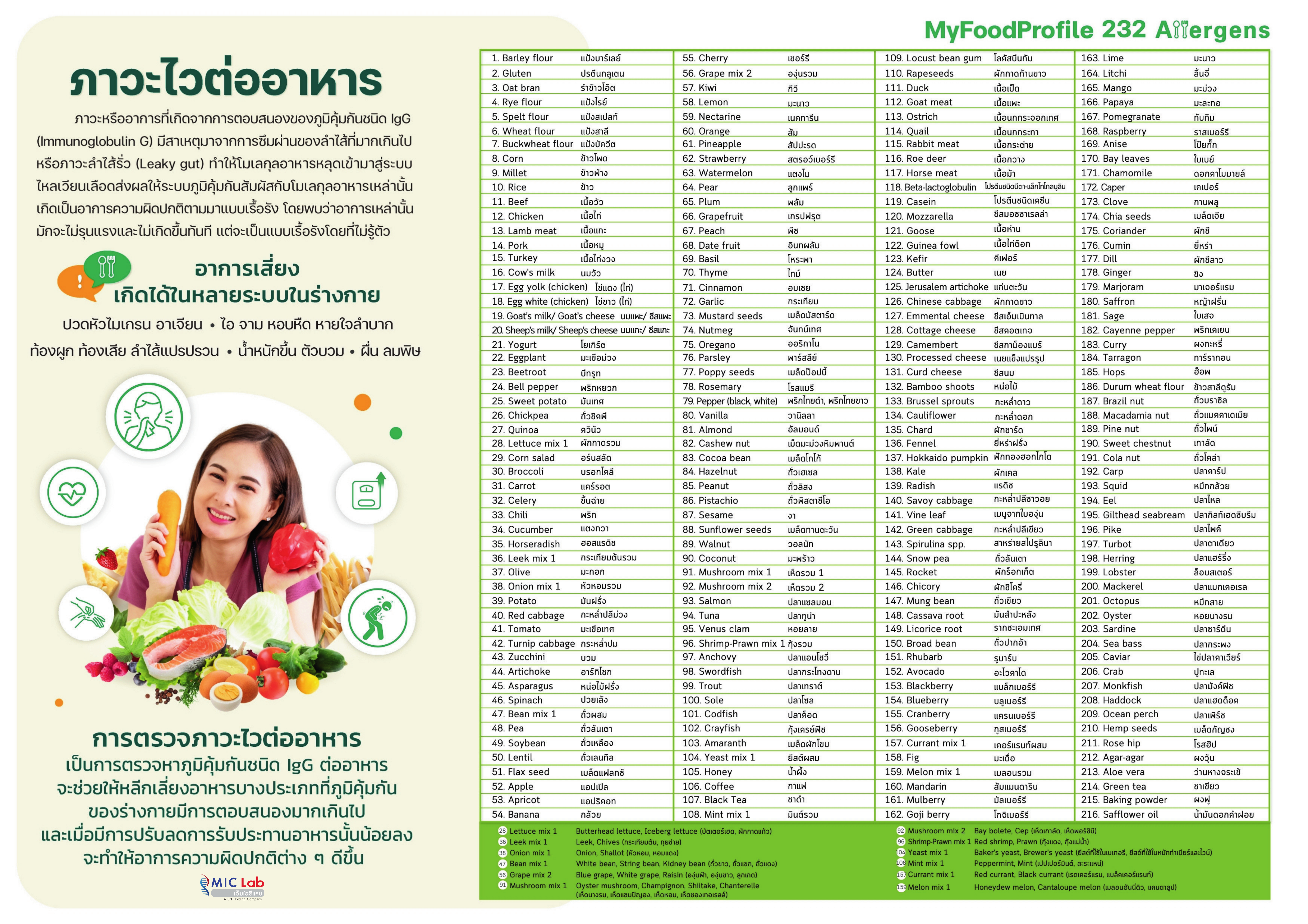 3.Food Intolerance (IgG) ตรวจภูมิแพ้อาหารแฝง 232 ชนิด / ปกติ 12,900.- / 16,000