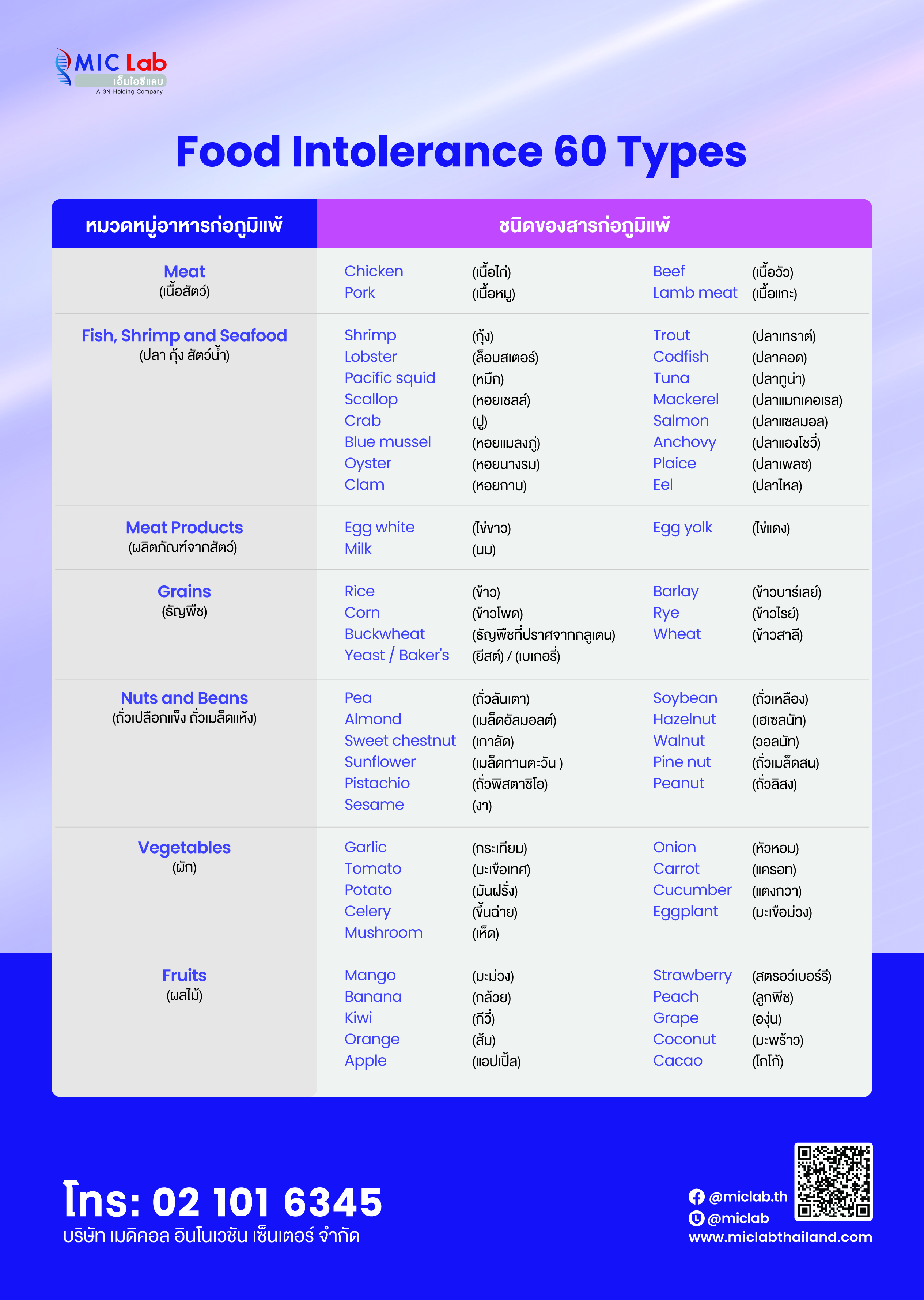 2.Food Intolerance (IgG) ตรวจภูมิแพ้อาหารแฝง 60 ชนิด พิเศษ 4,500.- ปกติ 6,500.-