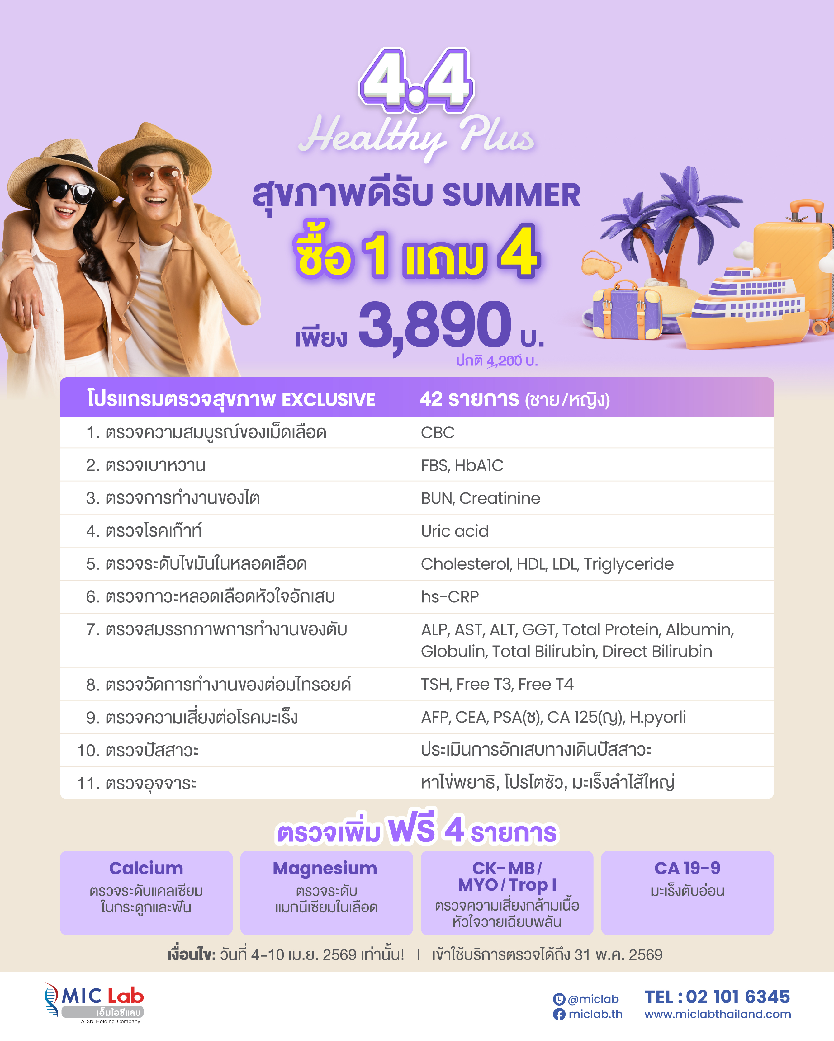 พิเศษ! เฉพาะลูกค้าที่จองตรวจสุขภาพที่ MIC Lab เลือกตรวจโปรแกรม Standard หรือ Exclusive