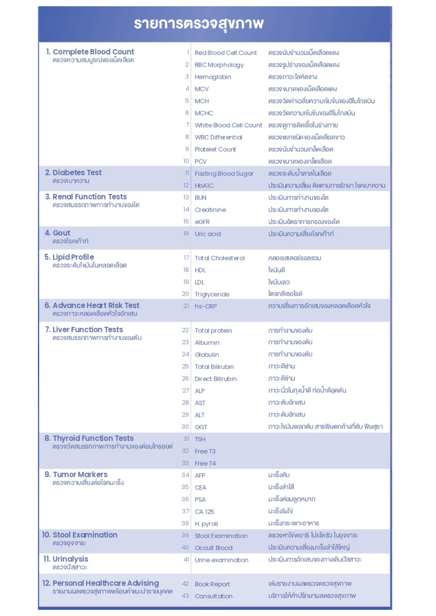 Exclusive Package ตรวจครบ…ครอบคลุมทุกความเสี่ยงโรคร้าย ตรวจสุขภาพ 42 รายการ (ชาย/หญิง) เพียง 2,900.- (ปกติ 5,200.-)
