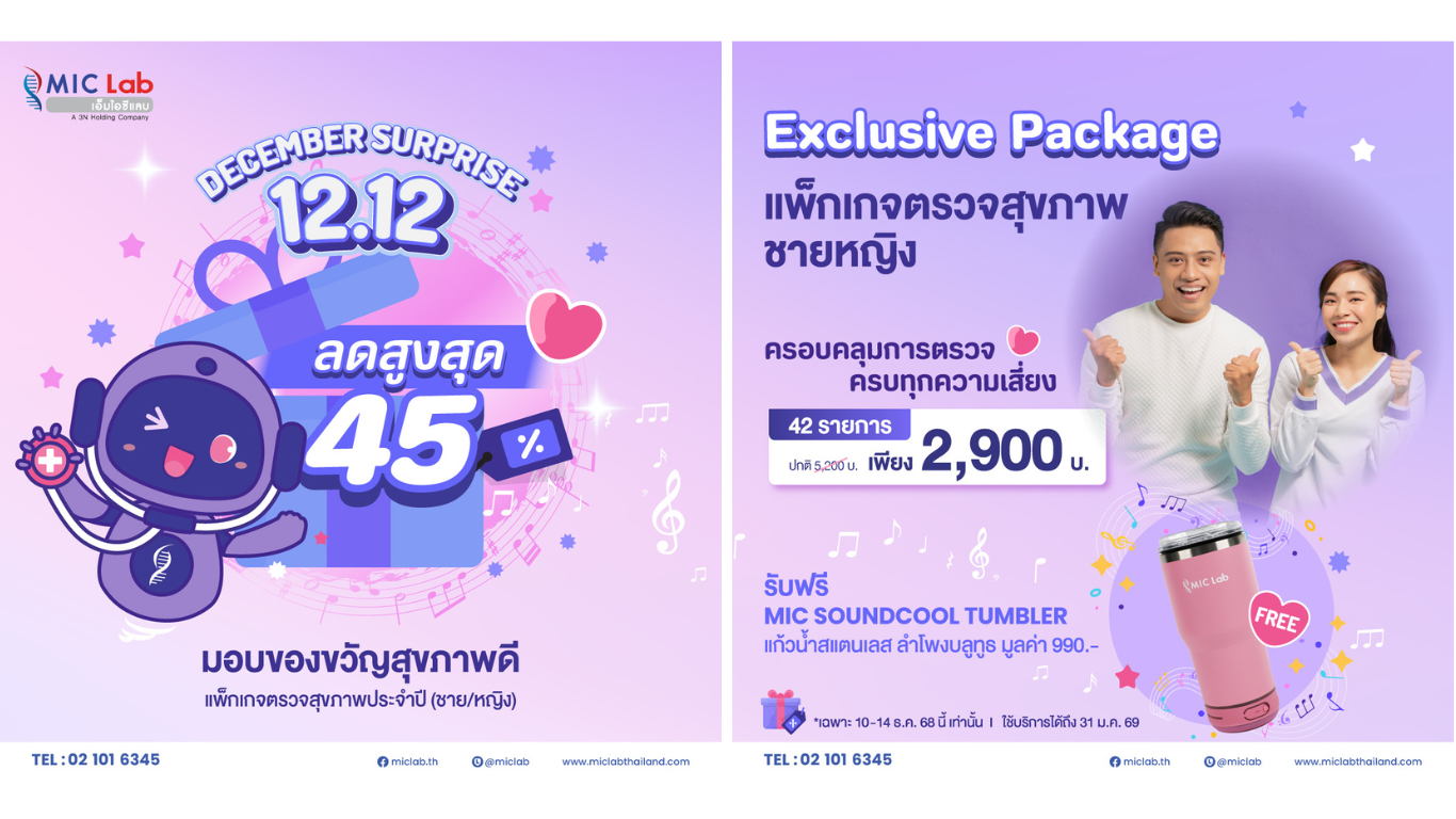 12.12 December Surprise มอบของขวัญสุขภาพดีให้กับตัวเองหรือคนที่คุณรักด้วยแพ็กเกจตรวจสุขภาพประจำปีสุด Exclusive ลดสูงสุด 45% (เฉพาะวันที่ 10-14 ธันวาคม 2568)