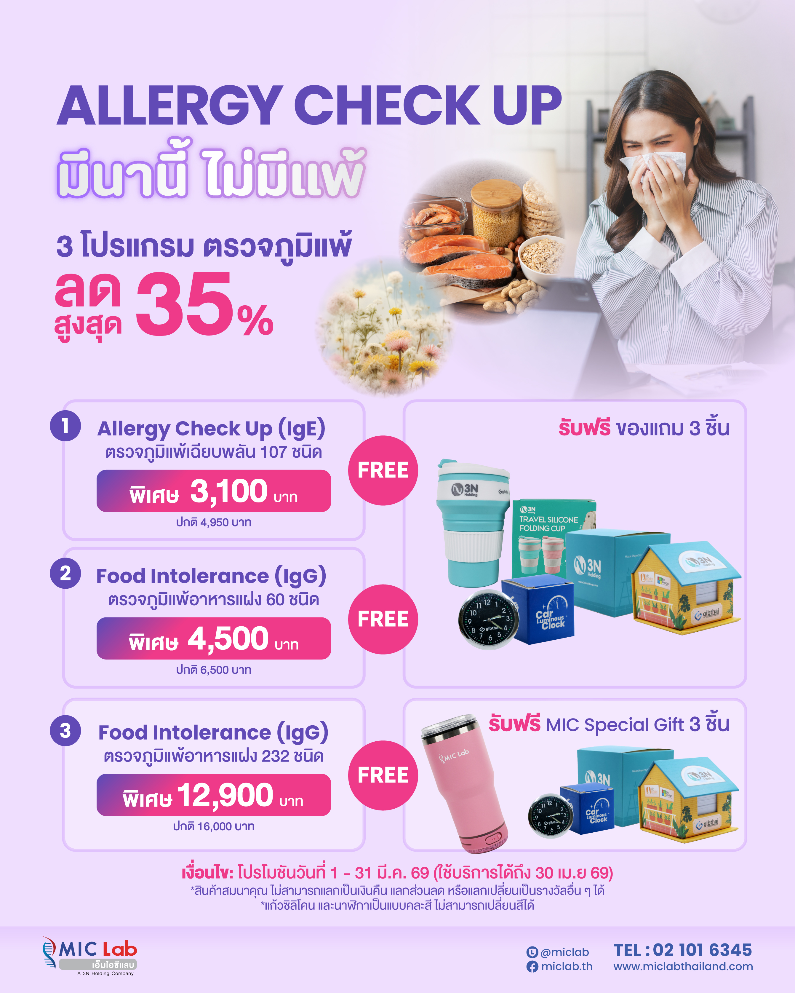 3 โปรแกรมตรวจภูมิแพ้ ลดสูงสุด 35 %