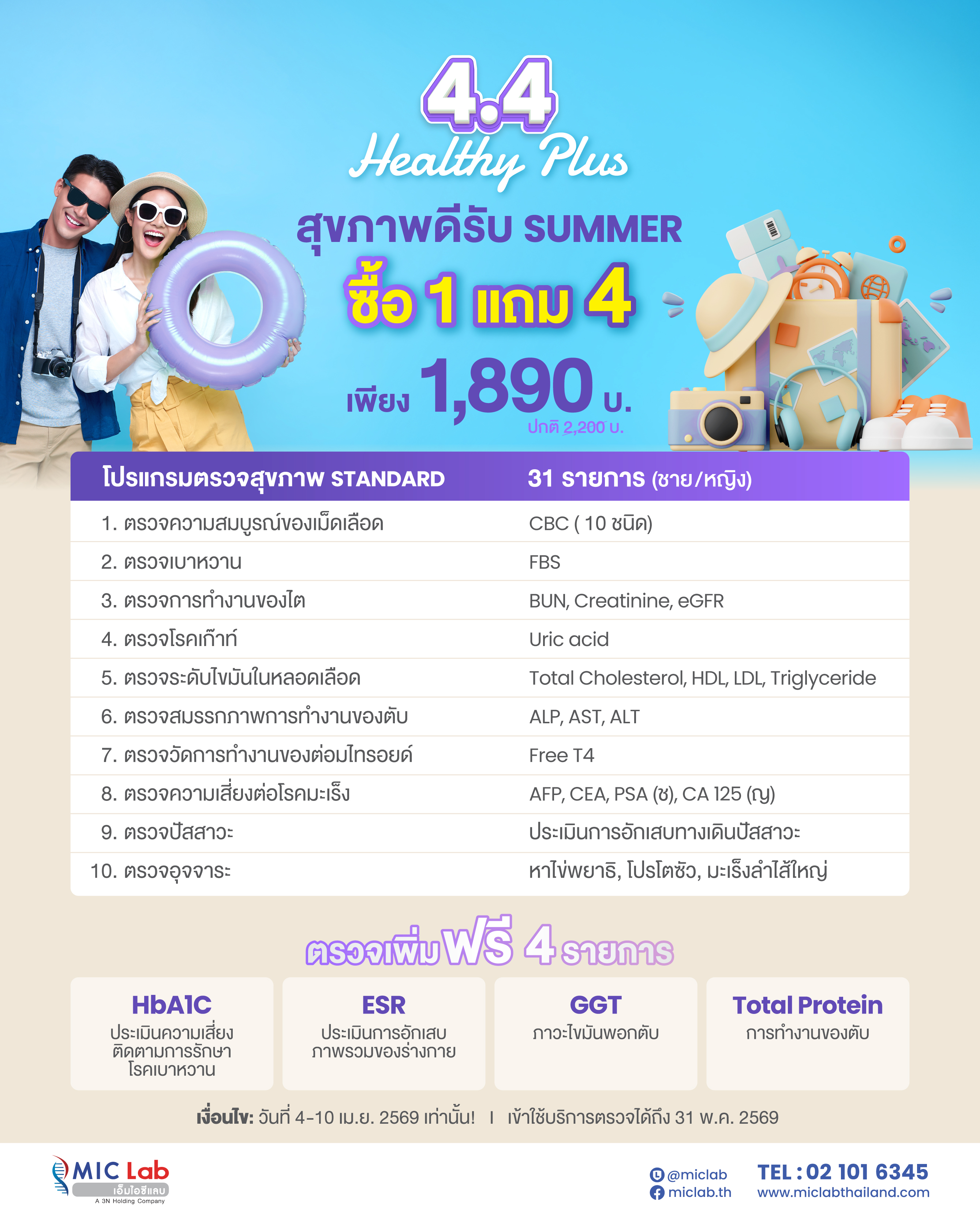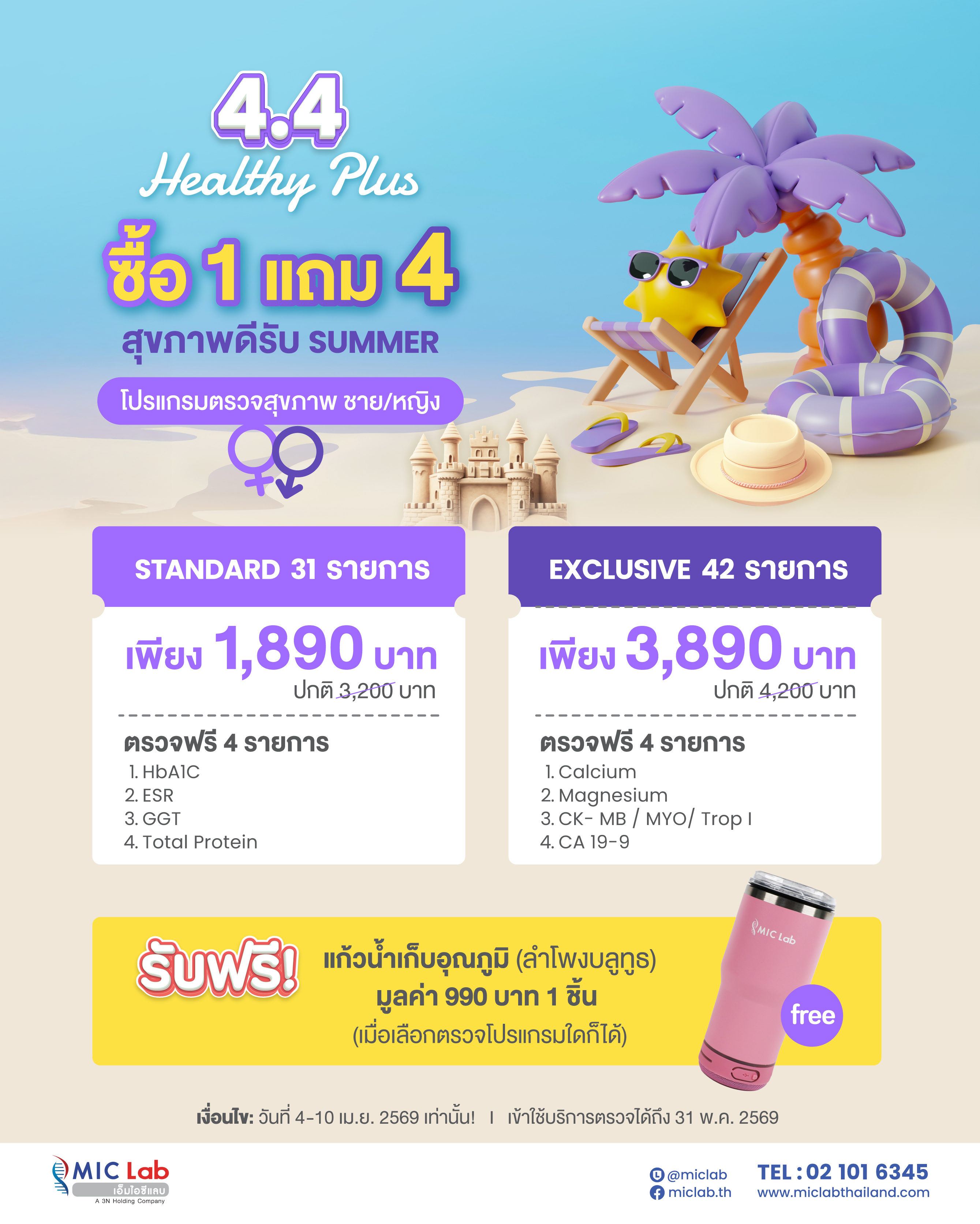 พิเศษ! เฉพาะลูกค้าที่จองตรวจสุขภาพที่ MIC Lab เลือกตรวจโปรแกรม Standard หรือ Exclusive